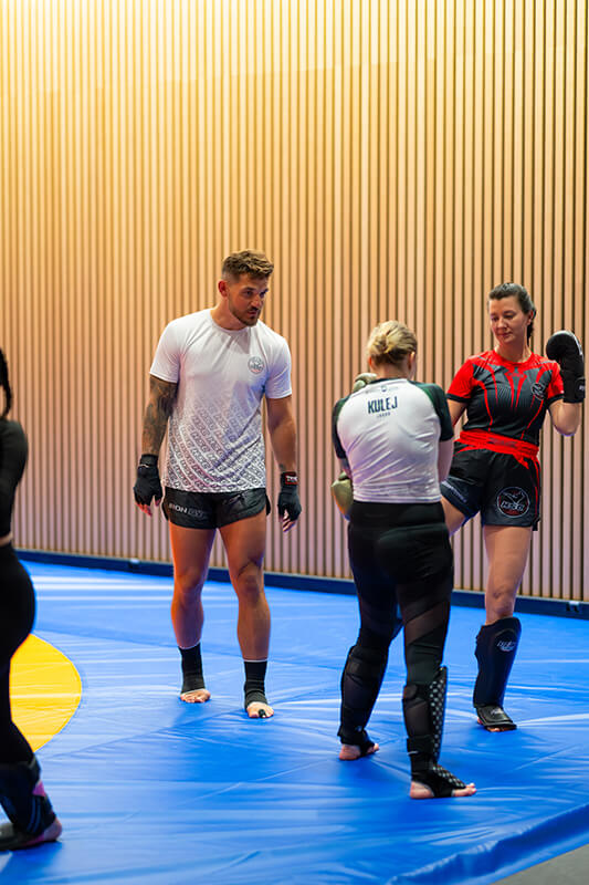 ✔ Profesjonalna kadra trenerska – masz gwarancję, że trenujesz pod okiem doświadczonych trenerów z bogatym dorobkiem w kickboxingu i sportach walki.