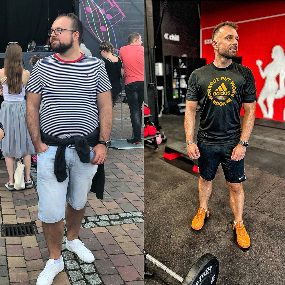 Trzeba zacząć od tego, że nigdy nie stroniłem od sportu i ogólnie pojętej aktywności fizycznej. Jazda rowerem, pływanie, wypad w góry, a zimą snowboard to było dla mnie coś normalnego. Dodatkowo, jak tylko była okazja „haratnąć w gałę” z kumplami, to się to robiło.Czegoś jednak brakowało. Potrzebne było coś jeszcze, bo mimo wszystko sama aktywność fizyczna, która przyznać trzeba nie była regularna, nie wystarczała by być w formie przy ówczesnym trybie życia (praca, nieregularne i nie zawsze jakościowo zadowalające posiłki, po pracy, częściej niż rower kanapa i piwko)… To wszystko sprawiało, że moje odbicie z każdym tygodniem zajmowało większą powierzchnię lustra.Nie wystarczyło posiadanie karty Multisport, bo samo trzymanie jej w portfelu nie spowoduje, że nagle połowa człowieka zniknie.Jakoś z początkiem sierpnia 2016 r. postanowiliśmy z żoną radykalnie coś zmienić i skorzystać z pomocy. Wybór padł na trenera personalnego. Odpaliłem google i, o ile dobrze pamiętam Kuba miał najlepiej pozycjonowaną stronę! Padło zatem na Kuleja. Napisałem maila. Pamiętam doskonale, odpisał szybko, że jest na wakacjach, ale jak wróci, to się odezwie. No i w ten sposób kilka dni później siedzieliśmy na konsultacjach w CTP, gdzie na co dzień urzęduje.Standardowa procedura, pomiar, wywiad, oczekiwania i tak zaczęła się nasza przygoda z treningiem personalnym.Kuba kompleksowo podszedł do tematu i prawie od razu dostaliśmy spersonalizowane foldery z wytycznymi dietetycznymi i suplementacyjnymi, a o kwestie aktywności dbał podczas treningów, które odbywaliśmy bez problemu wspólnie z żoną, dostosowując obciążenia właściwe dla każdego z nas. Treningi pod okiem Kuby w CTP to nie tylko „odbębnienie” tej godzinki, tylko pełne humoru, śmiechu i żartów spotkania, po których człowiek naładowany endorfinami wraca do codziennych obowiązków, nie myśląc nawet o bolących mięśniach, czy zakwasach. Po tych prawie 4 latach spotkań Kuba to nie jest już nasz trener, tylko dobry kumpel! Podsumowując opiszę krótko, co udało mi się osiągnąć ciężką pracą (ciężką wymaga tu podkreślenia!) pod Jego okiem: